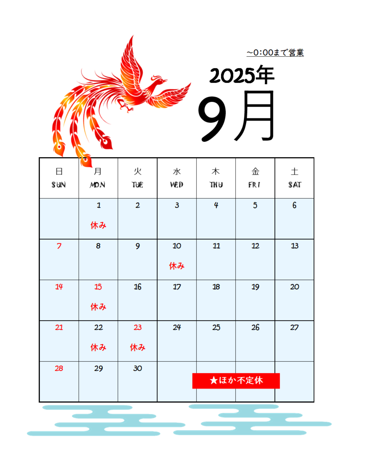 9月、休業日のお知らせ